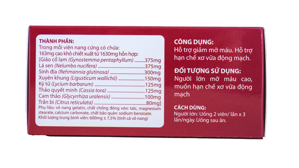 Công thức kết hợp nhiều dược liệu có lợi cho sức khỏe tim mạch.