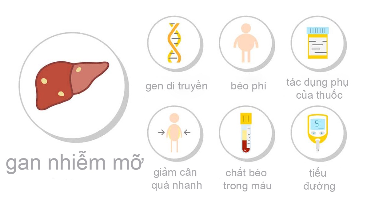 Gan nhiễm mỡ không do rượu (NAFLD): Liên quan đến các yếu tố chuyển hóa như béo phì, đái tháo đường, rối loạn lipid máu mà không do rượu.